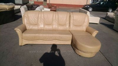 №01354.Диван четырех мисный бежевый кожаный бу из Голландии. - Офисная мебель