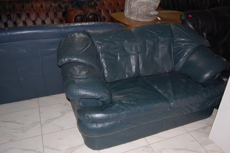 №0932.Диван двойка синий кожаный бу из Голландии. - Офисная мебель
