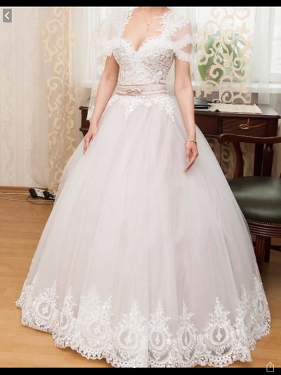 Свадебное платье размером s/m,цвета яйвори, подкладка цвета капучино, одето один раз, после химчистки. |