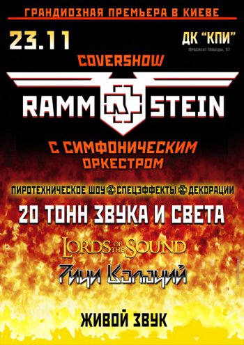 Концерт «RAMMSTEIN» c симфоническим оркестром (cover show) в Киеве состоится 23 ноября 2016 г, 19:30.