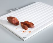 Белая – для готовых продуктов (благодаря своему рельефу остатки от нарезки останутся на доске)