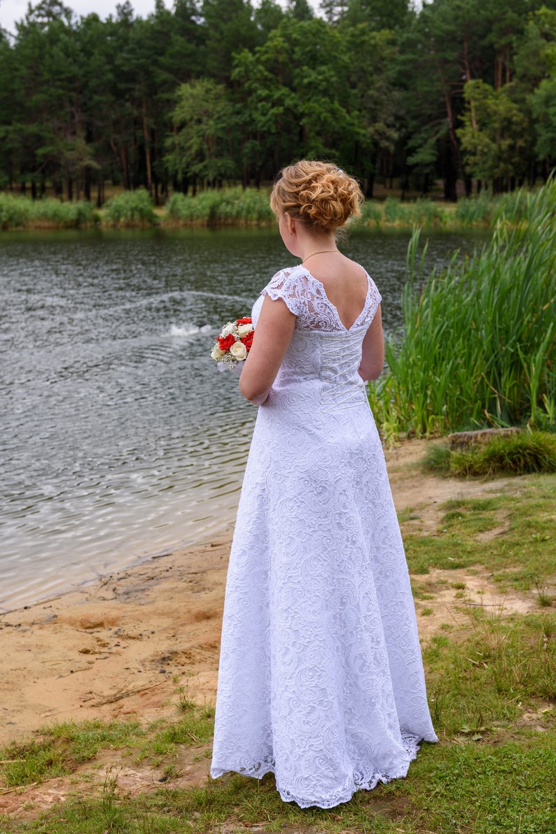 Продам, свадебное платье . Очень удобное и комфортное. Вы в нем не устанете. Надевала лишь раз в самый счастливый день. Платье не венчана! Состояние нового, сразу после химчистки. Платье сделано из натурального кружевного батиста, внутри один атласный подъюбник, не тяжелое, в нем не жарко. Прямой крой, от талии слегка расклешенный. Изготовлено на фабрике, за счет шнуровки подойдет как на 48 так и на 50 размер. Бедра и грудь могут быть больше, а вот талия - нет. Платье визуально стройнит и смотрится дорого. |