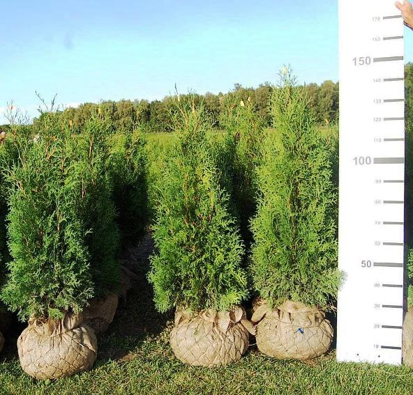 Постоянно в наличии в Киеве высококачественные туи западные Смарагд (Thuija occidentalis Smaragd) в росте 140-150,170-180,190-200 см; Брабант (Thuija occidentalis Brabant) в росте 190-200; 210-220; 240-250 см, в т.ч. стриженые формованные экземплары экстра-класса и топиарные формы.. Профессионально выращены на одном из ведущих питомников Европы. Плотная густая хвоя насыщенного цвета со всех сторон, правильная форма кроны, большие кома земли, машинная копка, гарантия целостности коревой системы, отличная приживаемость. Отлично для создания готовых живых изгородей, одиночных и групповых посадок. Постоянные прямые поставки свежих растений.