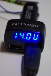 Мощная Автомобильная зарядка Амперметр, вольтметр, термометр на два USB выхода 4.5А, 5V, Два не зависимых выхода. Дисплей зарядки поочередно отображает напряжение бортовой сети автомобиля, потребляемый ток на USB выходах и температуру в салоне автомобиля Максимальная выходная мощность 25W. |