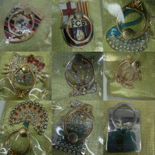 Виды колец-наклеек: Chanel, FC Barcelona, iPhone Gold, iPhone Silver, Samsung Silver