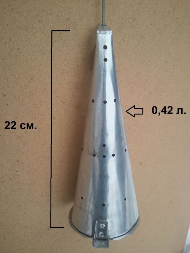 ПРАЦЮЄМО! ТОВАР Є В НАЯВНОСТІ! Продам кормушку-самосвал для прикормки рыбы. Может служить, как для зимней, так и для летней рыбалки. Кормушка предназначена доставлять вашу прикормку напротив вашей лунки. Механизм работы зимней кормушки: прикормка закладывается в конус кормушки-самосвала, закрывается крышкой, затем погружается на дно водоема, касаясь дна, крышка открывается, освобождая выход прикормки из кормушки (все как на фото).