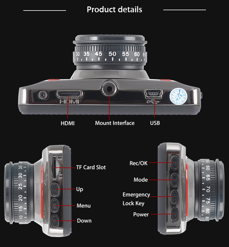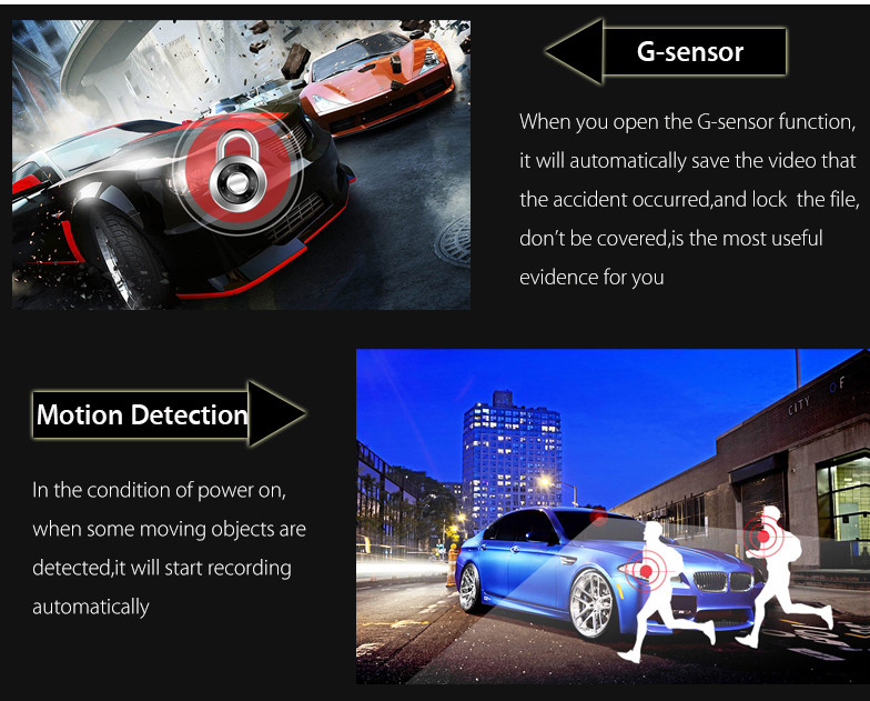 · Особенности:G-сенсор,Обнаружение движения,Циклическая запись,Отображение времени и даты,Ночное видение