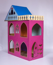 Большой складной домик в стиле Монстер Хай. Самый лучший подарок для ребенка это складной домик для игры с куколками. С нашим домиком для кукол можно играть уголками размером до 40 сантиметров какими как Барби Monster High Ever After High. Домик сделан из натуральных материалов - 3.5мм МДФ, дерева и ламината. окрашен безопасное водоэмульсионной краской на водной основе. На стене поклеены настоящие обои во всех четырех комнатах разные обои третий этаж открытая веранда крышу над верандой можно снять перевернуть или вообще убрать для удобства игры. Куклы и мебель представлена фото в комплект не входят. Домик не трудно собирать нужно лишь крестообразная отвертка и 10 минут времени. Домик поставляется в разобранном виде Либо мы можем собрать его для вас и вы приедете его и заберете.