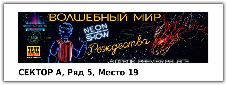 Продаю два билета на 25.12 на праздник "Волшебный мир Рождества" на 16.00. Билеты в секторе А отличном месте. Продаю, т.к. ребенок заболел. Цена указана за ДВА билета. Ссылка на мероприятие: https://kiev.karabas.com/volshebnyj-mir-rozhdestva Могу отправить билеты по электронной почте, или можно забрать при встрече. |