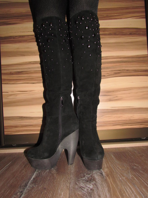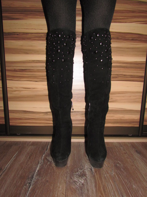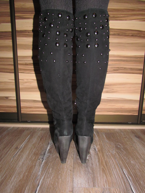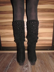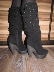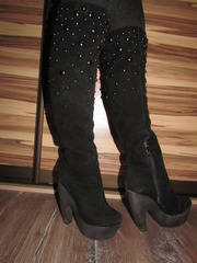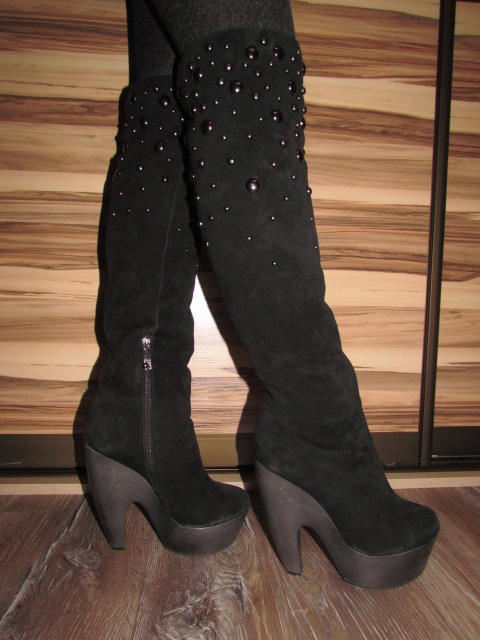 Продаю шикарные замшевые на цегейке сапоги - ботфорты на высоком каблуке! В отличном состоянии и очень модные! Размер каблука 14,5 см, размер передней платформы 4 см. Можно носить в вариантах: как ботфорты или приспустить гармошкой. Стелька 25 - 25,5 см. |