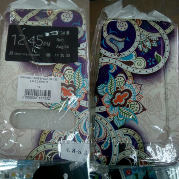 Универсальный чехол-книжка идеально подходит для мобильных телефонов, смартфонов и коммуникаторов с диагональю экрана 4,5-4,8" дюйма.