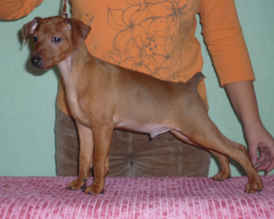 Питомник Монополия предлагает щенков карликового пинчера от отличных родителей.Легко поддаются дрессировке,преданность хозяину, хорошо уживается с другими животными. Всегда хорошее настроение.Приучены к пеленке. Документы КСУ,клеймо,привиты. Щенкам 3,5 мес. |