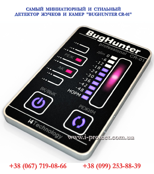 Невероятно тонкий (всего 5 мм!) и компактный профессиональный детектор жучков, аналогов которому не существует в мире! Скоростной микропроцессор, современная элементная база, сверхширокий частотный диапазон и супервысокая чувствительность позволяют ему без труда обнаруживать все известные виды радиожучков и даже подавителей сотовой связи. Уникальная особенность прибора заключается в сверхшироком динамическом диапазоне чувствительности (70 дБ), что значительно превосходит возможности конкурентов и увеличивает в разы эффективность работы устройства. Еще одно уникальное решение — TOUCH-панель и сенсорное управление. Своей формой и размерами детектор очень напоминает банковскую карту и не займет много места в вашем кармане или сумочке.
