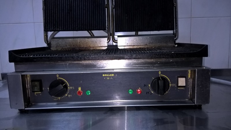Прижимной гриль Roller Grill предназначен для жарки мяса, бутербродов, рыбы, омлетов, блинов. Гриль имеет два поста, контактная поверхность рифленая, выполнена из чугуна. Температура регулируется в пределах от 0 до 350 С. Нагрев происходит одновременно сверху и снизу. Корпус гриля выполнен из нержавеющей стали. Имеется съемный поддон для сбора жира. Габаритные размеры прижимного гриля 600х385х220 мм. Размер рабочей поверхности 535х240 мм. Мощность 4 кВт. Напряжение 380 В. Цена: 8000 грн Гарантия: 6 месяцев (продам гриль прижимной бу, купить профессиональный гриль для кафе, продажа гриля бу, прижимной гриль со склада бу) |