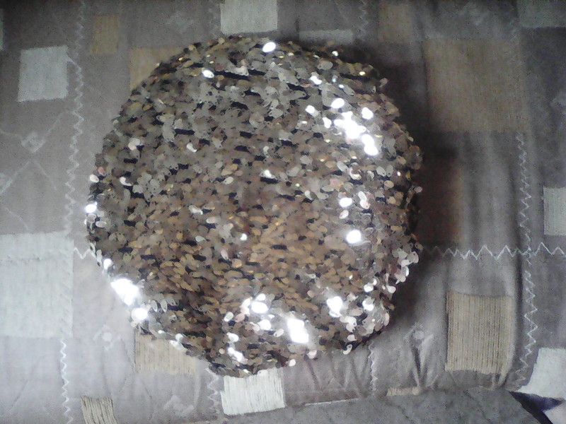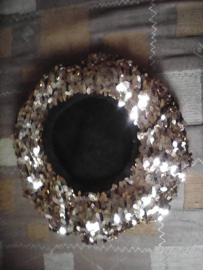 Берет нарядный с золотыми пайетками. Размер универсальный. Практически не носился. Теплый. Основа шерстяная. |