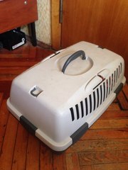 Пересносной бокс для собаки в новом состоянии, рассчитан на щенков и пород средних размеров. Дверца снимается, так что, а принципе, может служить и как домик для сна. |