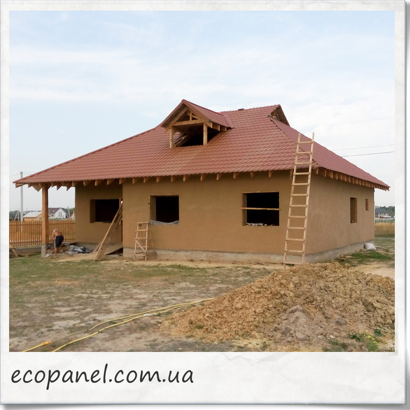 Снаружи и внутри дома экопанели оштукатуриваются глиняной штукатуркой или облицовываются кирпичом, магнезитовой плитой или другими облицовочными материалами.