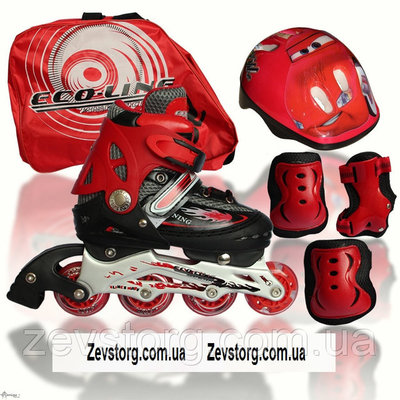 Набор: раздвижные ролики (светящиеся колеса) + защита (налокотники, наколенники, защита запястий) +шлем.