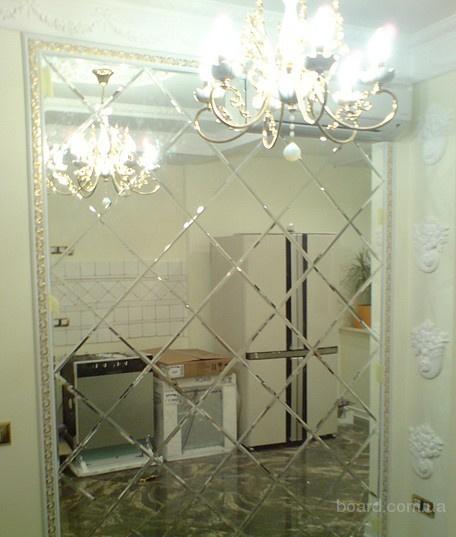 Производим и предлагаем для вас зеркальную плитку, зеркальное панно с фацетом 10 и 15мм в цветах: серебро, бронза и графит.