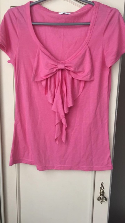 футболка хорошего качества с бантом,размер М-Л )Нежный цвет и интересная модель футболки) |