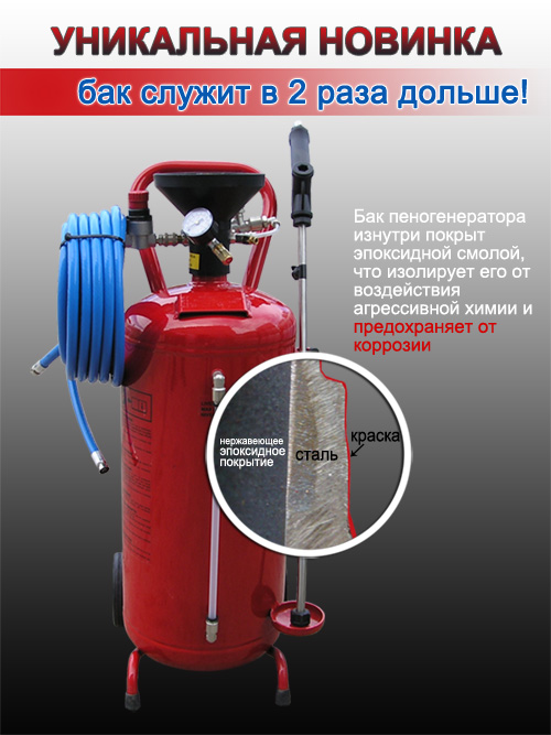 Новый бак пеногенератора и распылителя с внутренним слоем из пластика.