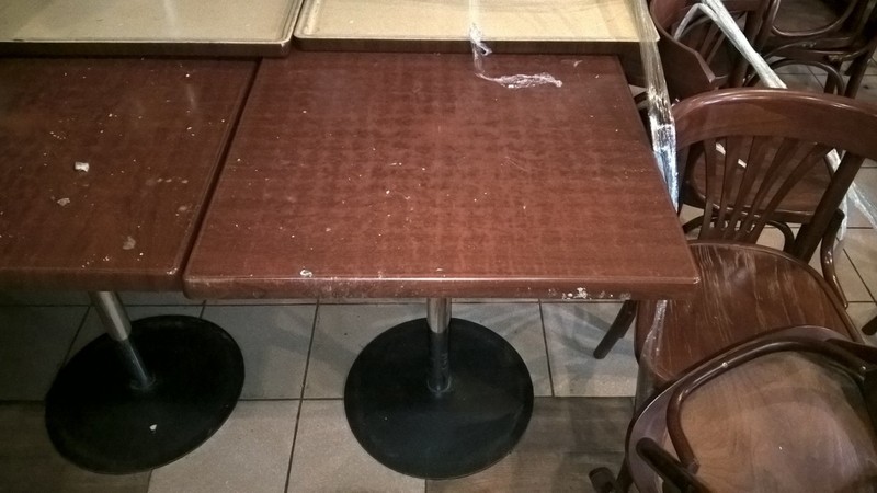 Столы бу для кафе, баров и ресторанов. Столешницы выполнены в коричневом цвете из верзалита, ноги металлические хромированные. Размеры 700х700х720. В наличии 30 шт. столы отлично подойдут для организации посадочных мест в вашем заведении. Цена: 1200 грн/шт Тел. 0688876481 Виталий (распродажа столов для кафе, мебель для кафе бу, столы верзалит для ресторана, купить столы для кафе со склада) |