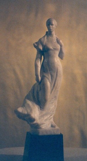 Статуэтка работы заслуженного скульптора, 38 сантиметров. Имеется надпись Г Кальченко 1973. Монумент её работы на площади Леси Украинки. Сама стала моделью для монумента из нержавейки "Батьківщина мати". Можно спросить в музее . Газета писала что все её работы выкуплены минкультуры. |