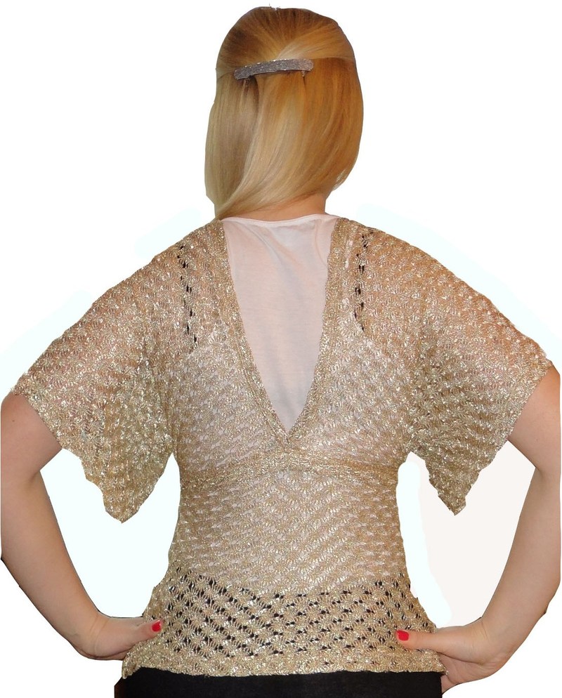 Продаю новую кофту фирмы CASTRO. Размер - 1/S/44 Материал - 75% нейлон/полиамид, 25% металлизированная ткань Цвет – золотистый/желтый Спереди завязывается на завязки, V- образный вырез на груди и на спине, свободный рукав. Подойдет для праздничного образа так и в повседневной носке. Новая , без этикеток. Покупалась в сети Argo, CASTRO marin_k@inbox.ru |