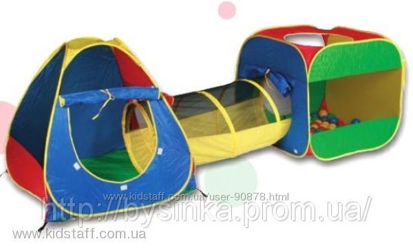Игровая палатка для детей «Домики соединенные туннелем». Каждый домик имеет два сетчатых окна и двое дверей. У квадратного домика лаз имеется даже на крыше. В набор входят 100 мячиков диаметром 9см. Размеры: домик слева 90см х 90см х 95см домик справа 80см х 80см х 80см туннель диаметр 48 см, длина 110см тел 096 8 45 5 045 Интернет магазин детских товаров «МОЯ БУСИНКА"-http://bysinka.prom.ua/ детские палатки, детские домики палатки, палатка детская игровая, купить детскую палатку, детские игровые домики, барахолка, детские домики, детские товары, детские игрушки, палатка |