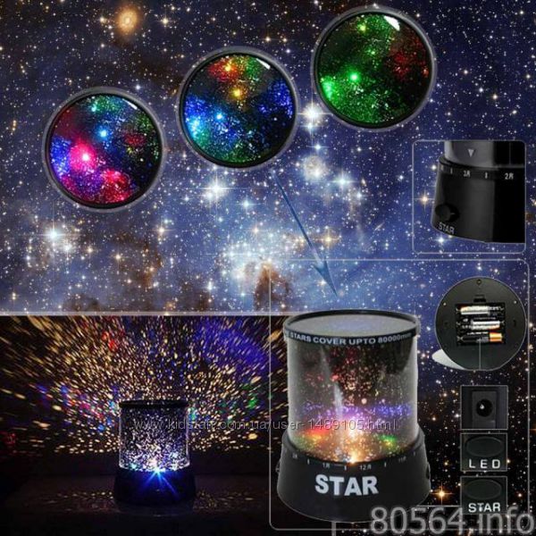 Магия звезд в помещении! Изображение разноцветного звездного неба украсит вашу комнату и сделает ее креативной. Благодаря этому проектору, звёздное небо будет у вас на стенах и потолке.