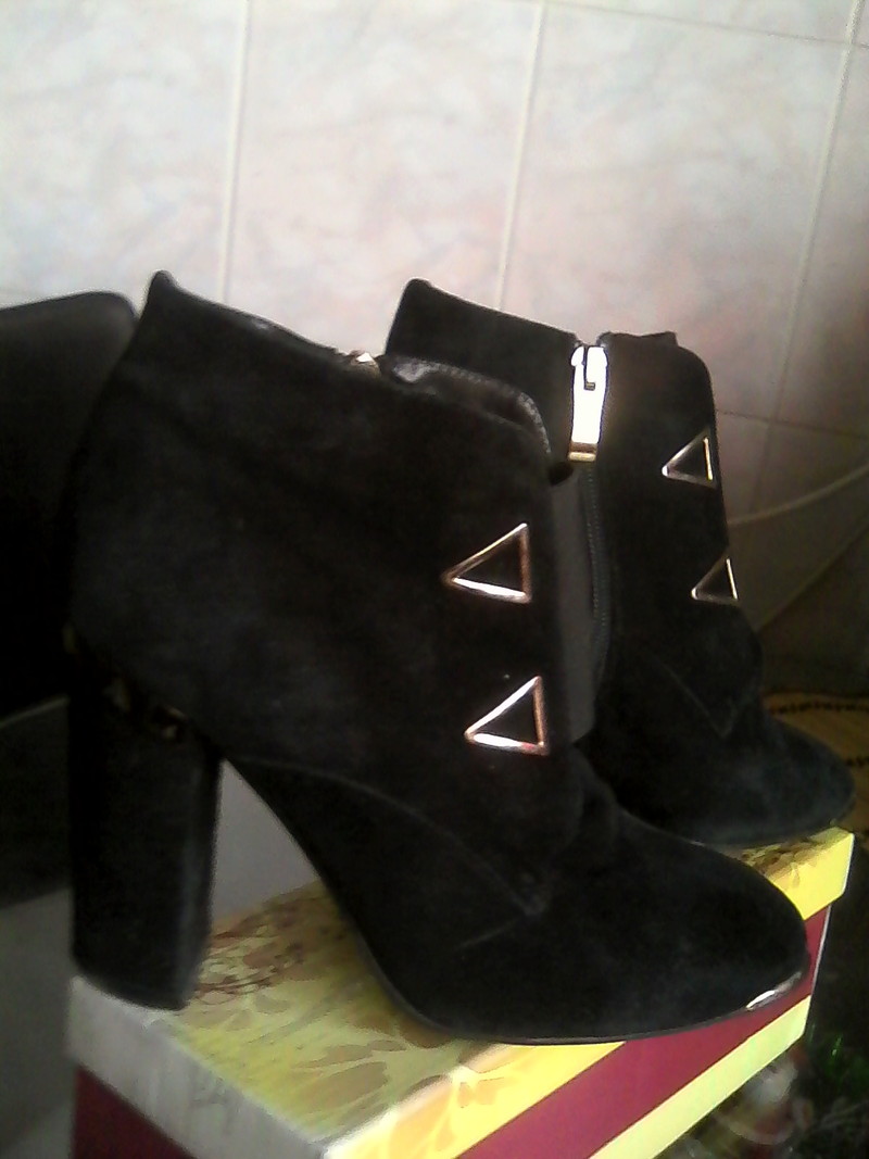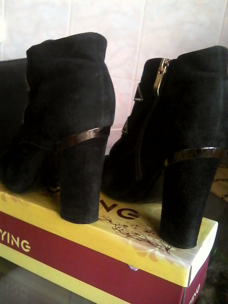 Замшевые женские ботинки 37 размер, высота каблуке 10 см, за счёт резинки можно регулировать ширину. |