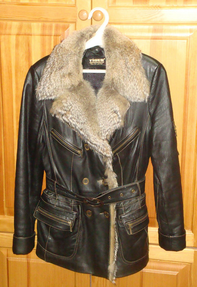 Черная кожаная куртка, на воротнике волчий мех,на синтепоне в отличном состоянии |