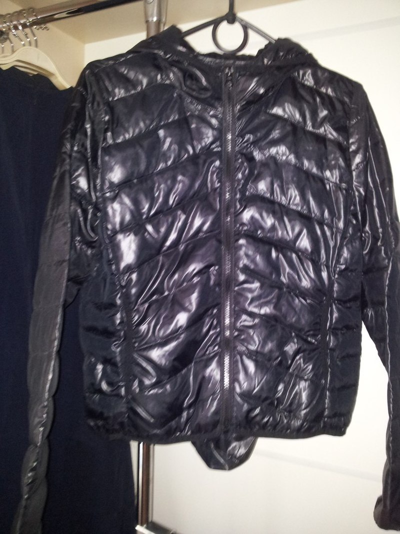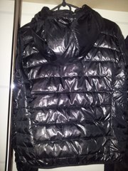 женская куртка. на размер м. черная с капюшоном. внутри пух. |