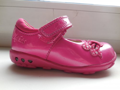 Продам туфельки от Clarks со светящимся сердечками на подошве. Размер - 19. Длина стельки - 13 см. Состояние - отличное, носились несколько раз. |