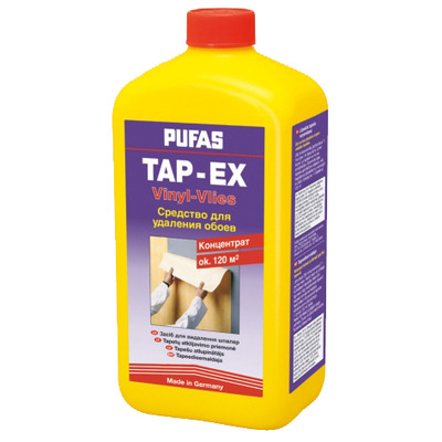 Средство PUFAS TAP-EX (Пуфас Удалитель обоев) предназначено для легкого удаления виниловых, текстильных, бумажных, с шероховатым волокном обоев и клеевых красок.