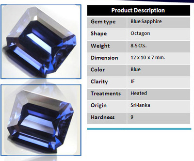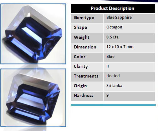 САПФИР синий, вес - 8,5 карата Чистота IF(1 по нашему) огранка октагон. месторождение - Шри Ланка, огранка - Таиланд. все воспросы по мылу gopkal@yandex.ru |