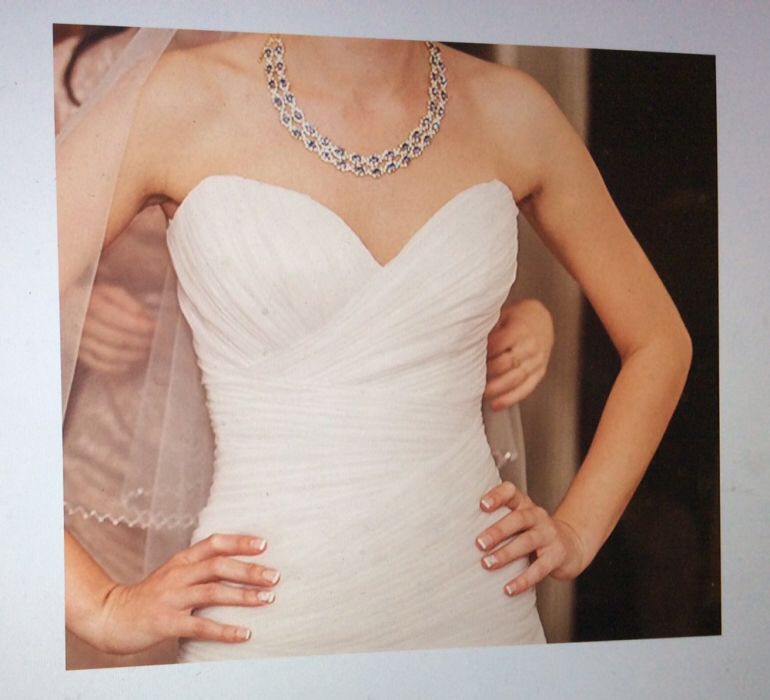 Продам своё свадебное платье! ТМ Hadassa. Состояние на 5 , после химчистки, храниться в чехле! В Киеве возможна примерке. По Украине- доставка новой почтой или укрпочтой. Подойдёт на размер 42 и 44 ( сзади шнуровка от лопаток до копчика) есть красивый шлейф, можно пристегнуть на пуговички чтоб было удобно ходить . Цена снижена до 2950 грн очень нежно и изящно смотрится. Подробности в личку) |