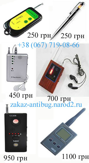 Детекторы жучков продам, детектор камер продам, индикатор поля, защита от прослушки, поиск прослушки, устройство обнаружения жучков, поиск скрытых камер, поиск прослушивающих устройств, поисковики жучков, антижучки – антибаги. Находят все виды прослушки - радиожучки, GSM-жучки, передающие мобильные телефоны и др., а также скрытые видеокамеры – проводные и беспроводные. Также есть подавители (глушители) GSM-жучков. Возможны оптовые поставки. Работают не только в режиме обнаружения (ручка-индикатор, брелок-индикатор – 250 грн), но и поиска точного места расположения жучков и скрытых камер (детекторы со шкалами индикации - 450-950 грн), а также индикации частоты передачи жучков либо камеры (1100 грн). Консультация при покупке и использовании, гарантия.