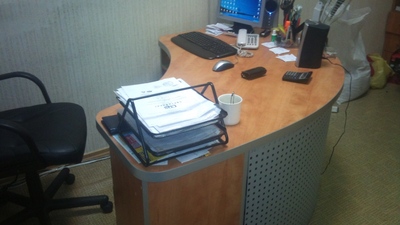 продам офисный компьютерный стол подставка под клаву и место для сис.блока На фото) |