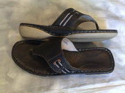 Сандалии кожаные. Размер - 39. Длина стельки - 26см. Стелька-кожаная. Производство - Австрия. Черного цвета. В отличном состоянии. |