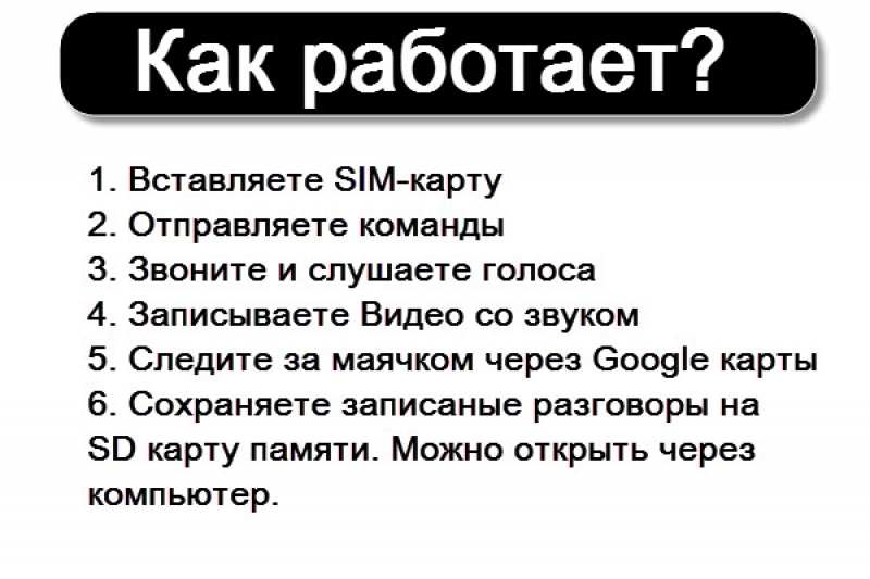 Новинка! Mini A12 - GPS-трекер. Основные характеристики диктофона Mini A12: 1. Видео камера. Фотоаппарат. 2. Диктофон с записью на SD карту. 3. Датчик движения. 4. Карта памяти micro SD до 32 Гб. 5. Можно найти маячок на Google карте. 6. Управление с помощью СМС команд. 7. Сигнализация GSM. Автоперезвон. Если Вы хотите купить диктофон с GPS-трекер Mini A12 в Украине уже сегодня, звоните. Тел.: (093) 293-12-58. Марина. Дополнительная информация на сайте proslushka.com.ua |