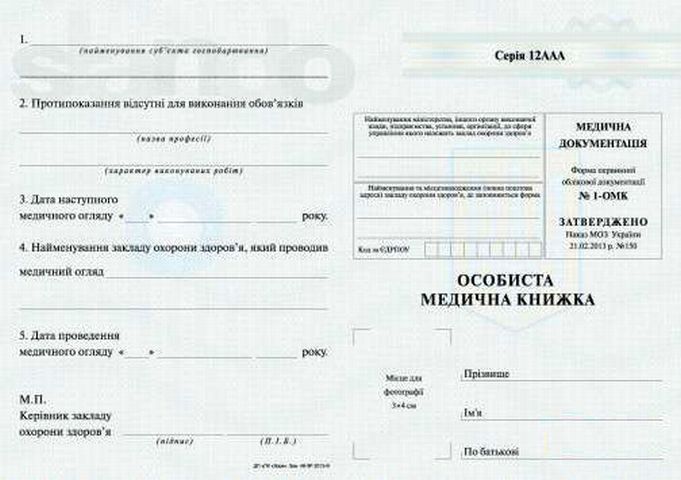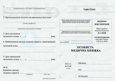 Профессиональные услуги оформления официальных медицинских книжек нового образца №1-ОМК и любых медицинских справок регистрируемых в едином реестре. Полный санитарный минимум, все допуски и анализы. У нас реально получить оформленую медкнижку за 1 день. Стоимость медицинской книжки ( нового образца 1-ОМК ) - 220 грн. Возможна доставка и отправка документов по новой почте (наложеным платежем) Работаем с 9.00 до 21.00 093 983 81 81 096 422 81 81 066 931 81 81 Med-group.com.ua |