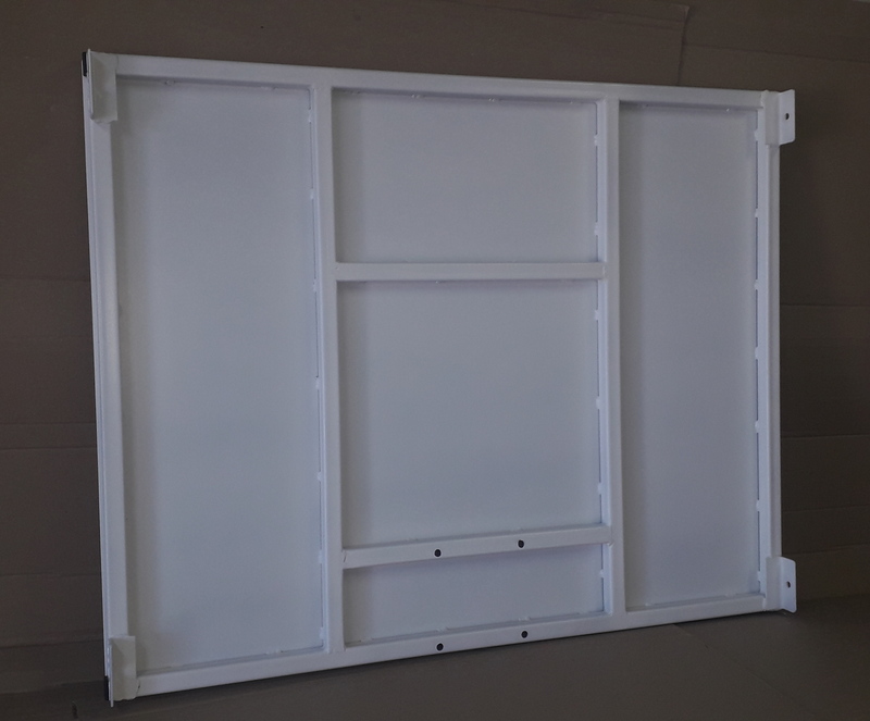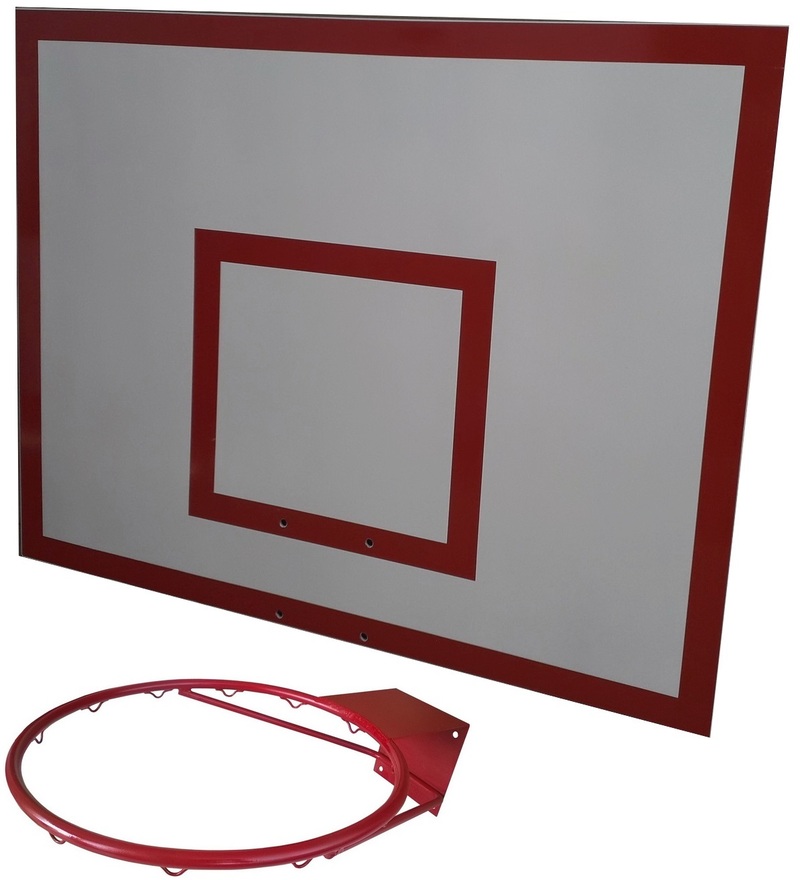 Щит представляет собой панель из листа металла толщиной 2 мм. Лист закреплён на металлической раме (профильная труба 25х25мм.) Каркас укрепляет общую конструкцию баскетбольного щита и предотвращает его вибрацию. Щит подходит для установки в зале и на уличной площадке. Расстояние между отверстиями под кольцо 12,7см.Х12,7см. Покраска баскетбольного щита в 2-а этапа. Нанесение грунтовки и покраска щита предотвращает его коррозию.