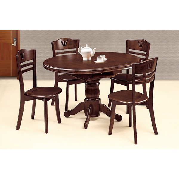 Элегантный обеденный комплект состоит из раскладного круглого стола(90+30см)и двух стульев, цвет - темная вишня |