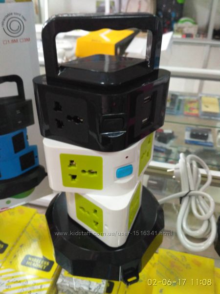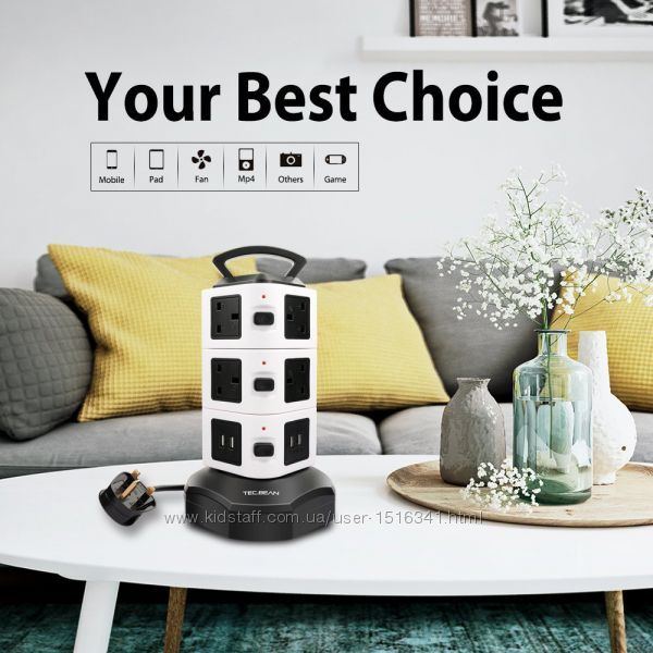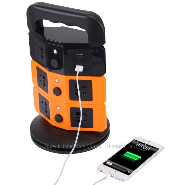 оснащен 3 Слоя 11 Розетки и 2 USB Порта, чтобы удовлетворить ваши различные потребности.