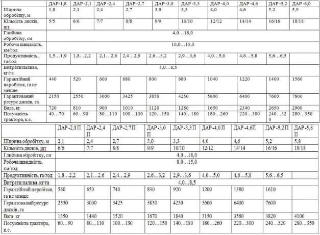 Диски використовуються великого діаметра (660мм) і їх розташовується менше на метр захвату чим дисків меншого діаметру і це дає можливість виготовити агрегат з меншою матеріалоємністю, зменшується кількість підшипникових вузлів (14 проти 20 (D=560 мм) при ширині захвату 2,5 м ), енергоємність обробітку ґрунту і економиться паливо.