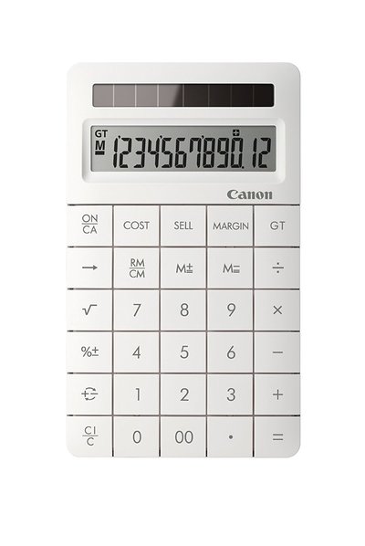 Калькулятор Canon X Mark II, White – профессиональный 12-разрядный вычислительный прибор. Верхняя часть калькулятора изготовлена из высококачественного фирменного пластика, а нижняя часть – из прочного алюминия и дополнена резиновыми накладками, благодаря чему калькулятор не будет скользить по поверхности. Работает калькулятор от солнечной энергии, поэтому не требуется делать замену батареек. Для большего удобства предусмотрены функции, которые позволяют вычислить себестоимость, цену продажи и маржинальность товара. |