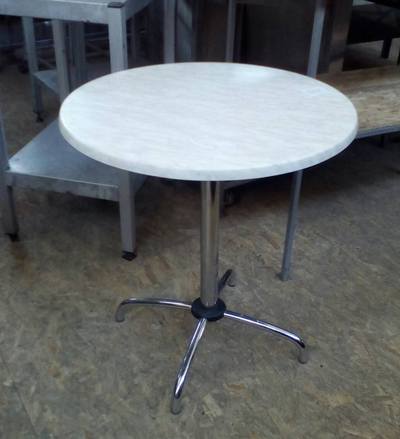 Продам стол б/у, в отличном состоянии. Столешница белого цвета, Верзалит. Опора стола выполнена из хромированного металла. Стол б/у изготовлен из качественных материалов, влагостойкий и не поддается внешним воздействиям. Подойдет для использования в кафе, столовой, кофейни, пекарни, бара, бистро, а так же для летних площадок заведений общественного питания. Размеры стола б/у – D=700мм, H=750мм. В наличии 3 шт. На складе есть аналогичные столы квадратной и прямоугольной формы. |