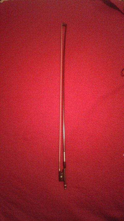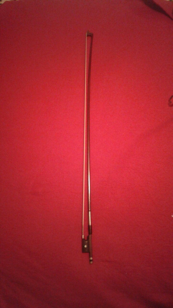 Мастеровой смычок 4/4. 20-й век. Цепкое звучание и индивидуальный тембр. Трость- граненая, фернамбук. Колодка - черное дерево. Отлично работает с любыми штрихами. Длинна 742,5 ; 727 мм. Возможен торг. " |