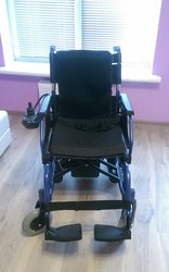 Съёмные, регулируемые подлокотники и подножки; джойстик; контроллер; складывающаяся рама из стальных труб с антикоррозионным покрытием; складная спинка; электродвигатель; антиопрокидыватели; задние колеса с пневматическими шинами, передние - с цельнолитыми; реверсная тормозная система; магнитные блокираторы заднего хода.